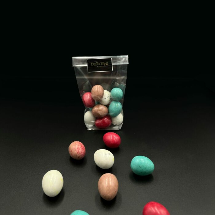 Laissez-vous tenter par nos assortiments d’œufs dragéifiés ! Disponibles en 100g ou en 200g vous trouverez dans ces sachets de quoi comblez tous les palets !
