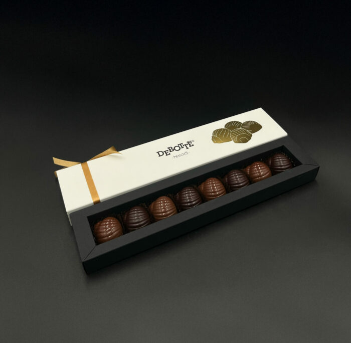 Un nouvel écrin pour nos escargots en chocolat. Vous trouverez dans cette boîte 4 escargots au chocolat au lait et 4 escargots au chocolat noir.